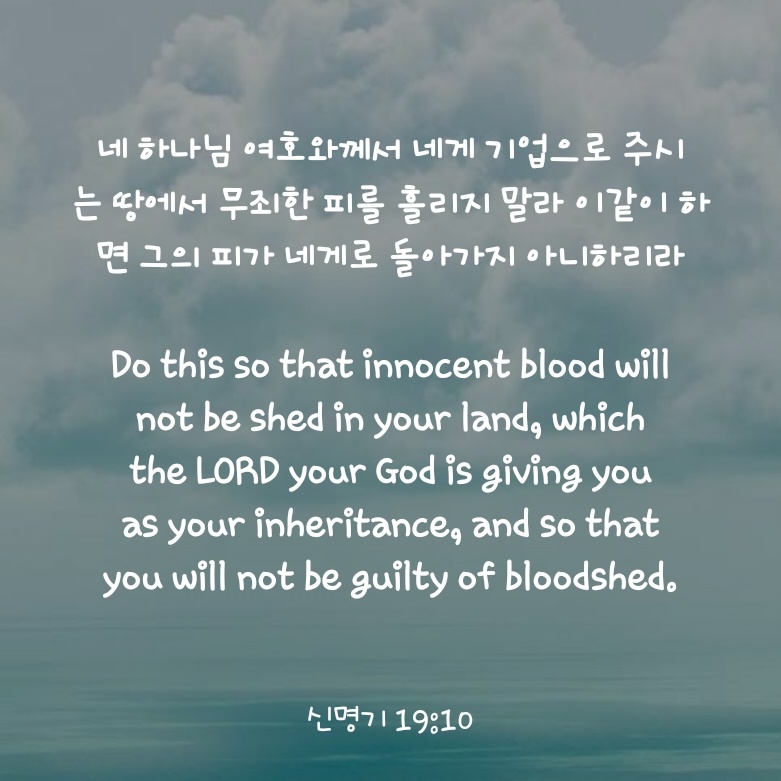 네 하나님 여호와께서 이 열국을 멸절하시고 네 하나님 여호와께서 그 땅을 네게 주시므로 네가 필경 그것을 얻고 그들의 각 성읍과 각 가옥에 거할 때에(신 19:1)