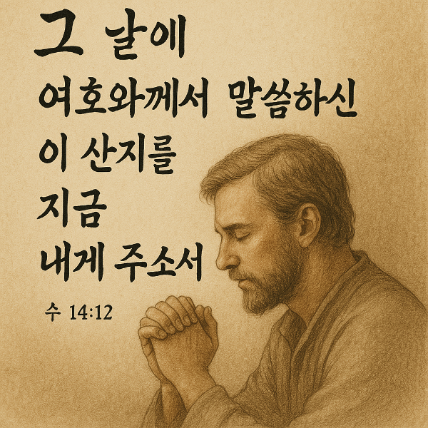 과거의 언약을 붙잡고, 현재의 인도하심을 신뢰하며, 미래의 성취까지 바라본 그 갈렙의 믿음을 제 것으로 삼기 원합니다. "이 산지를 내게 주소서"라고 담대히 고백하며, 주께서 함께 하시면 어떤 거인의 성이라도 무너질 것을 믿습니다. 주님, 이 고백이 제 입술에서 흘러나오게 하옵소서.